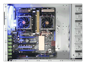 The side panel with dual channel air guide is designed specifically for AMD Quad FX platform |