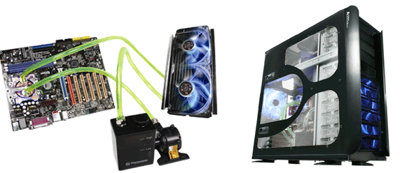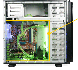 Full tower case with built-in liquid cooling system |