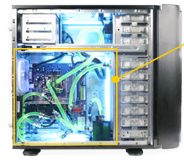 According to the temp with 25oC outside the chassis, in contrast with 35oC inside, the radiator is designed at front of door instead of inside to have a great improvement in cooling performance.