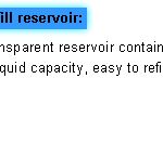 ‧Reservoir : Contains 350 c.c. of liquid capacity, easy to refill