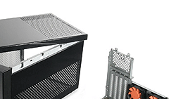 Thermal engineering played an equally important part when designing the LANBOX HT. Today’s most high-end graphic cards or processor often requires added cooling and high-wattage power supply in order to operate at their maximum capability. Before, gaming enthusiasts that opted to build a small form factor PC were limited to mid-end graphic card or processor that resulted in mediocre performance. Today, LANBOX HT enables the use of most high-end CPU, powerful graphic card and even a full-size PSII; the result, a small form factor PC that is equally powerful as full sized PC. |