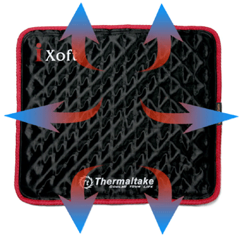 iXoft can be used on desk. If it’s used on lap, which helps to isolate heat coming from Notebook.
